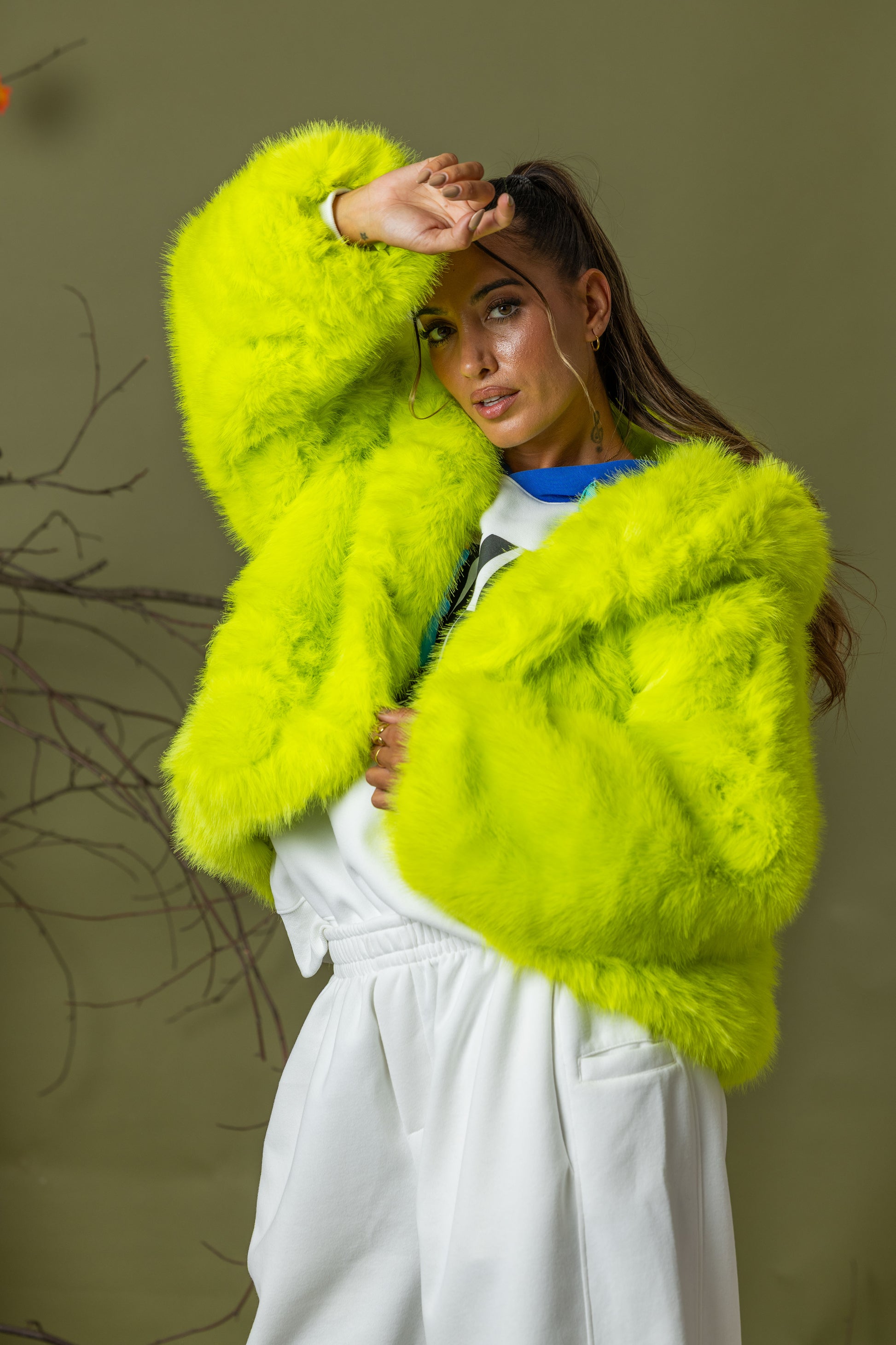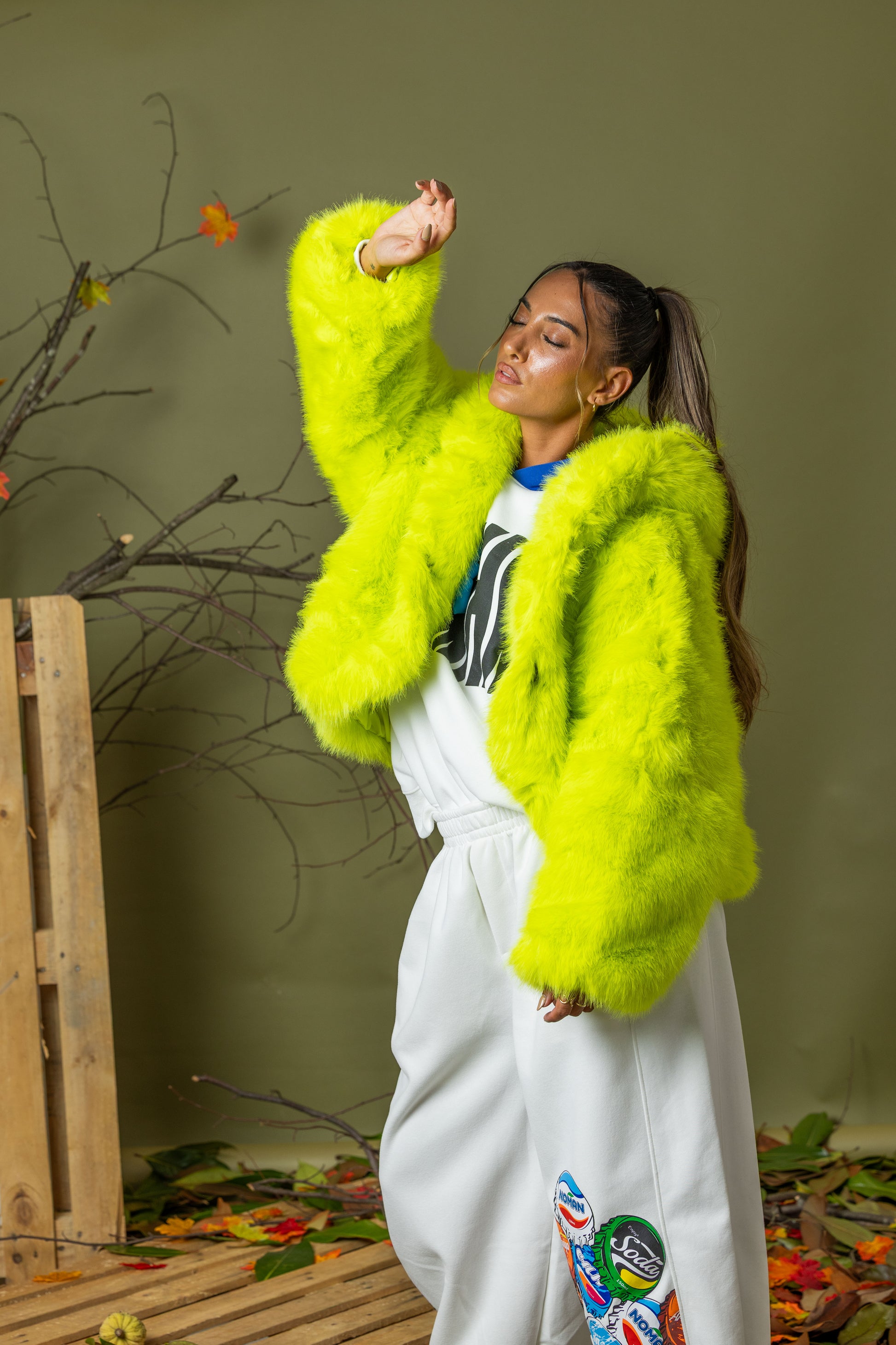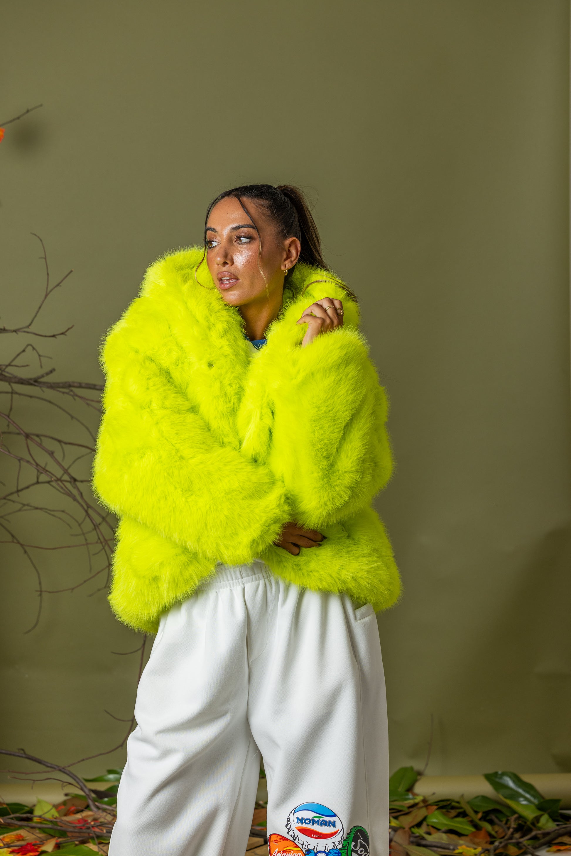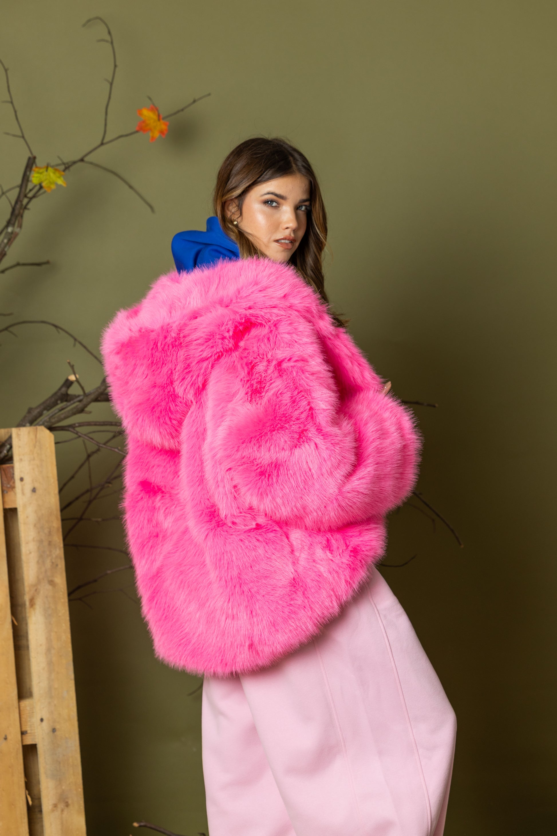 Se o objetivo é não passar despercebida, o casaco Glow Up é o protagonista que o seu guarda-roupa precisava. Com pêlo super macio, capuz, bolsos laterais e corte moderno, ligeiramente mais curto à frente e mais comprido atrás, este modelo combina conforto com atitude.