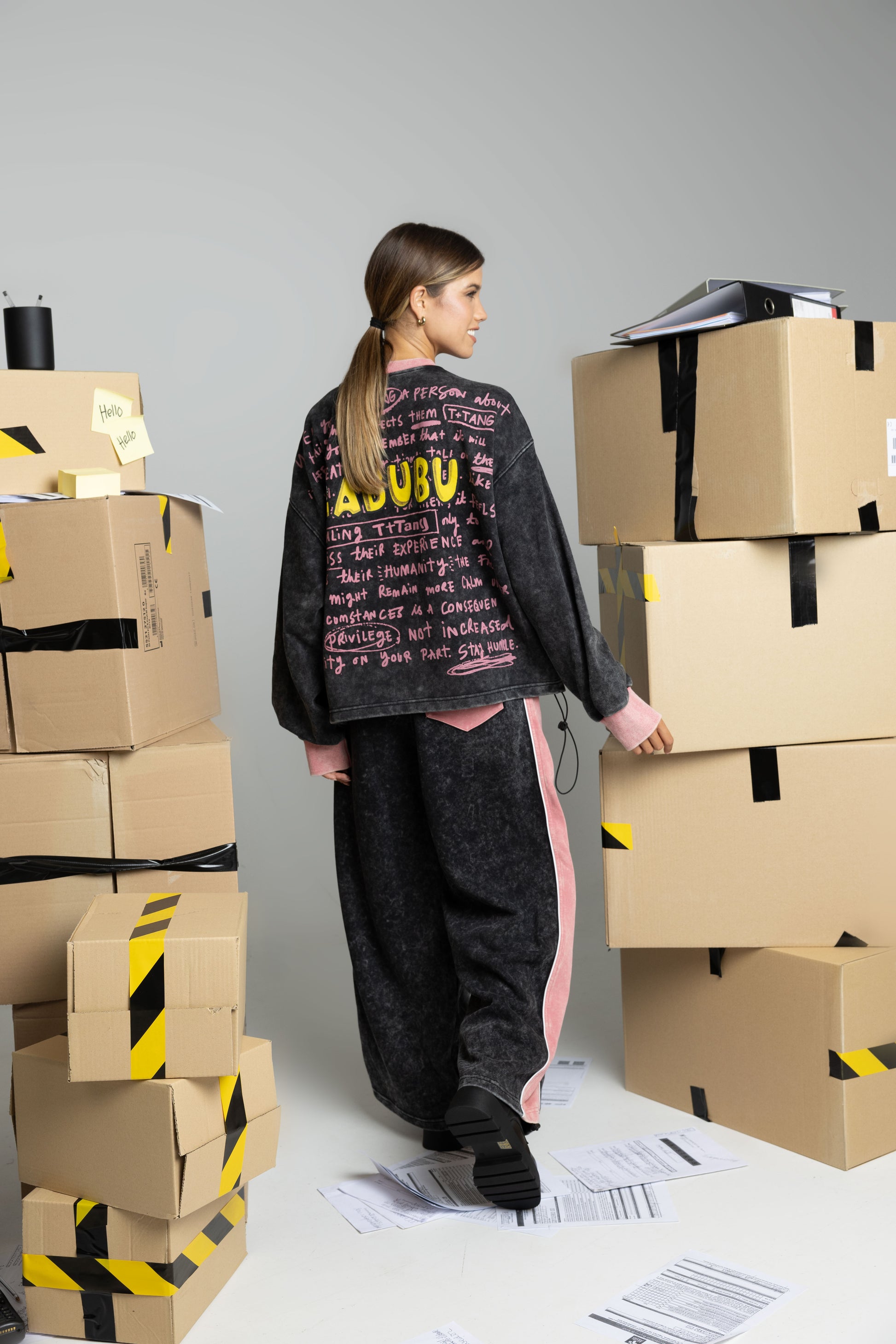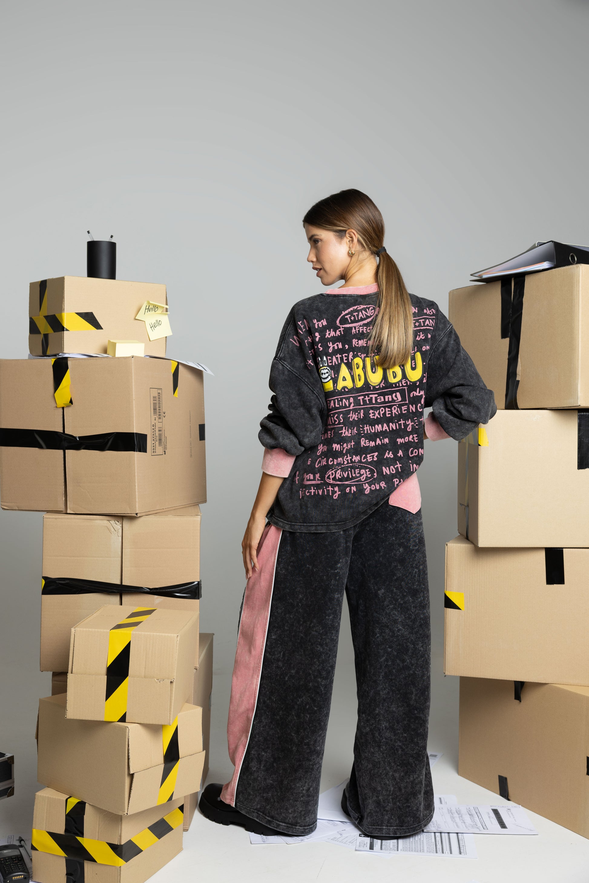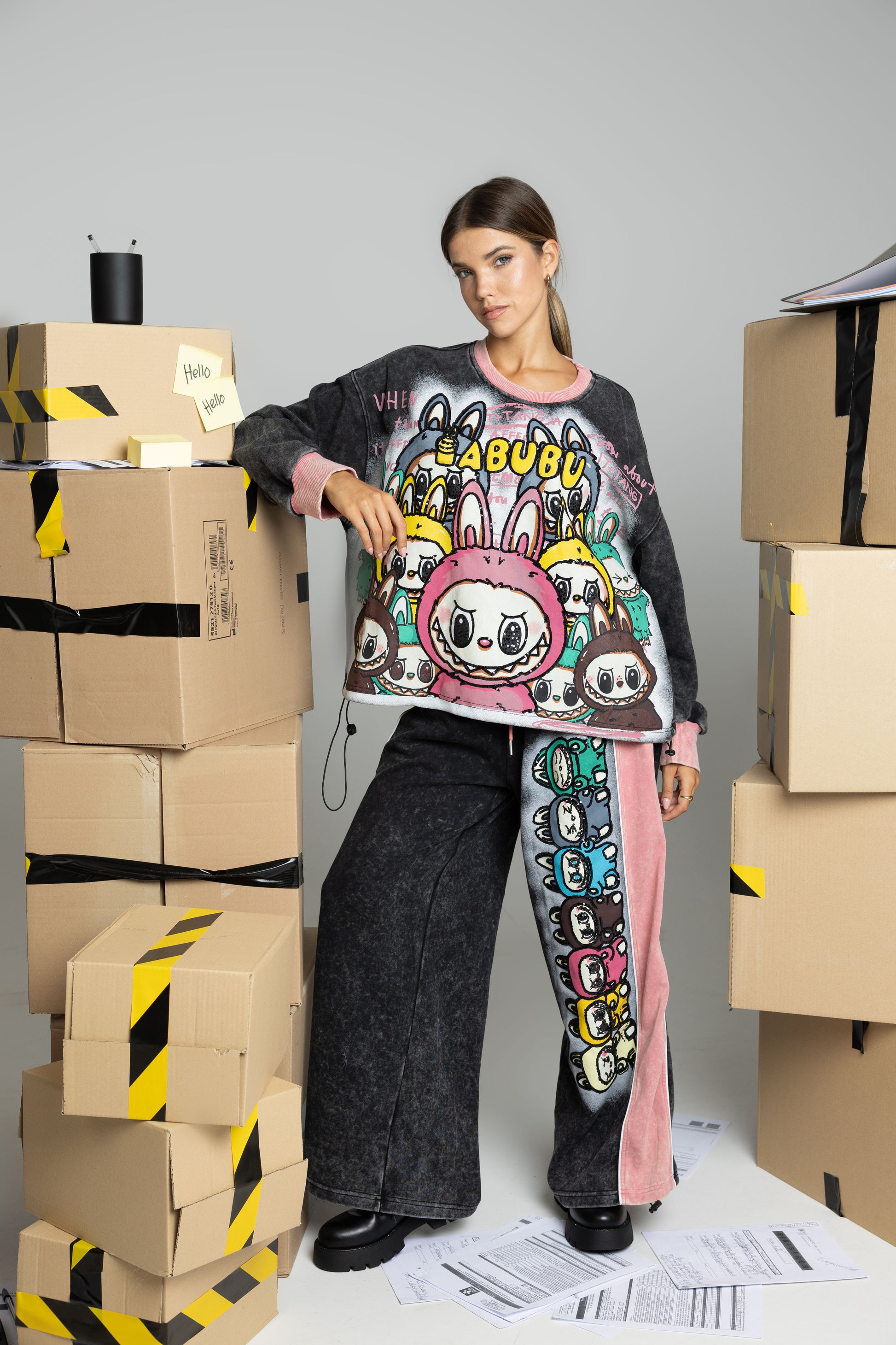 Conjunto exclusivo Labubu, composto por calça pantalona e sweat cropped ambas ajustáveis. Um conjunto cheio charme e atitude, que une conforto e tendência, perfeita para quem gosta de se destacar com estilo.