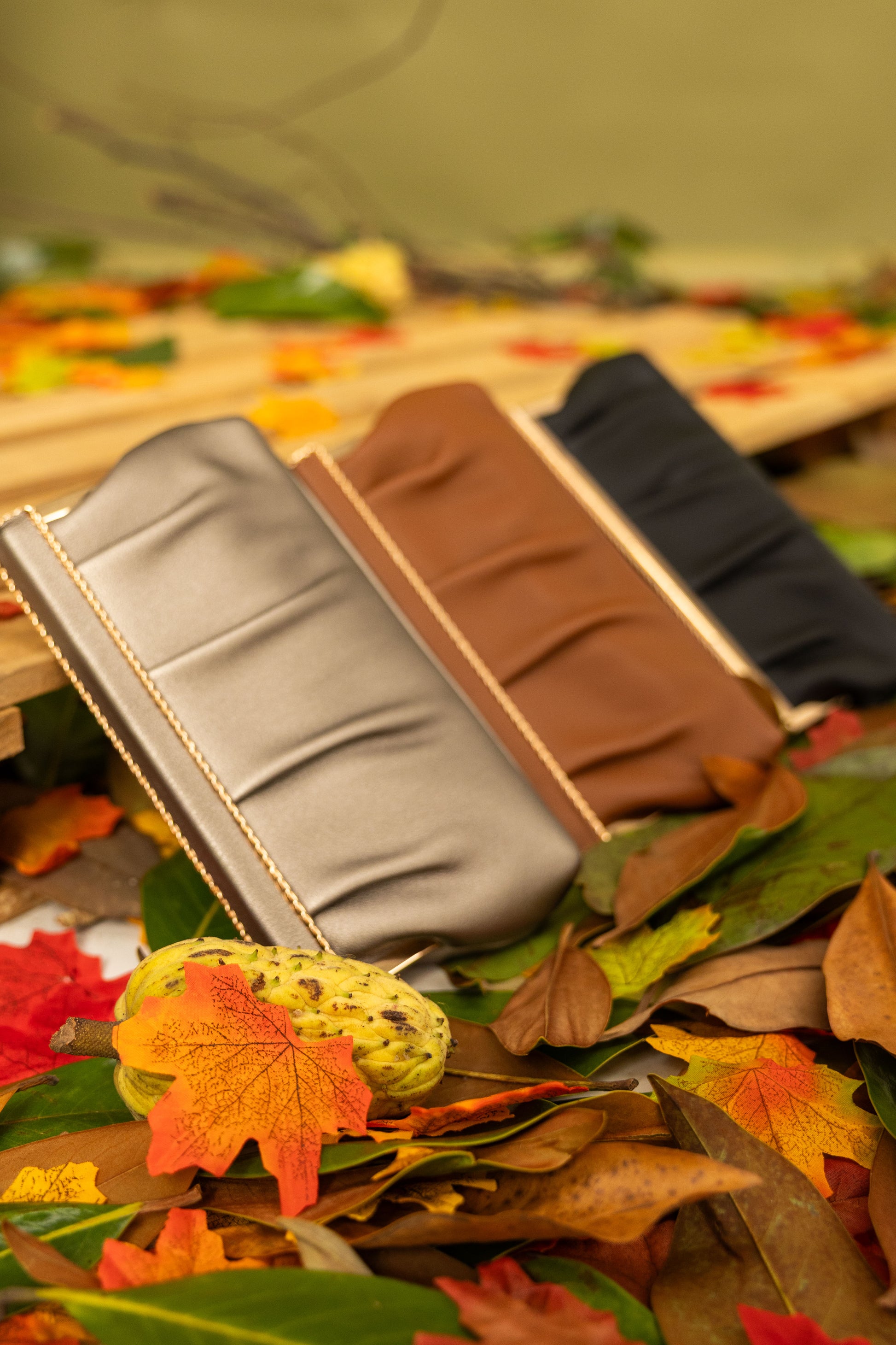 O formato estruturado tipo envelope oferece praticidade e charme, ideal para ocasiões especiais.