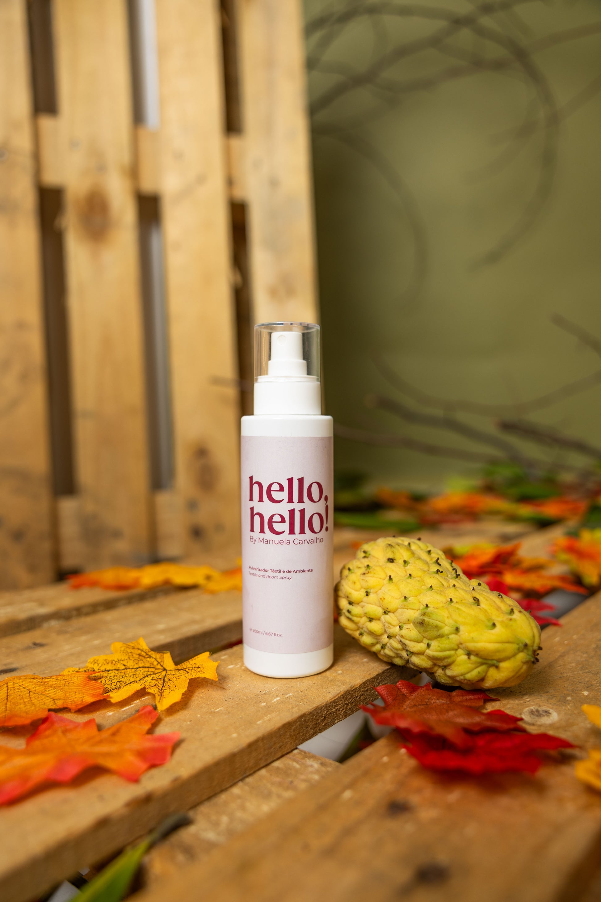 Versátil e envolvente, este spray perfumado de 200 ml pode ser aplicado tanto em tecidos como diretamente no ar, perfeito para perfumar a tua roupa preferida e criar uma atmosfera agradável à tua volta. Fabricado em Portugal com a qualidade e o cuidado que definem a Hello Hello, apresenta-se num frasco elegante e minimalista, de tons suaves e tipografia refinada que refletem o espírito sofisticado da marca. Este é o complemento perfeito para prolongar a experiência Hello Hello no teu dia a dia, um toque aromático exclusivo que torna cada momento mais especial.