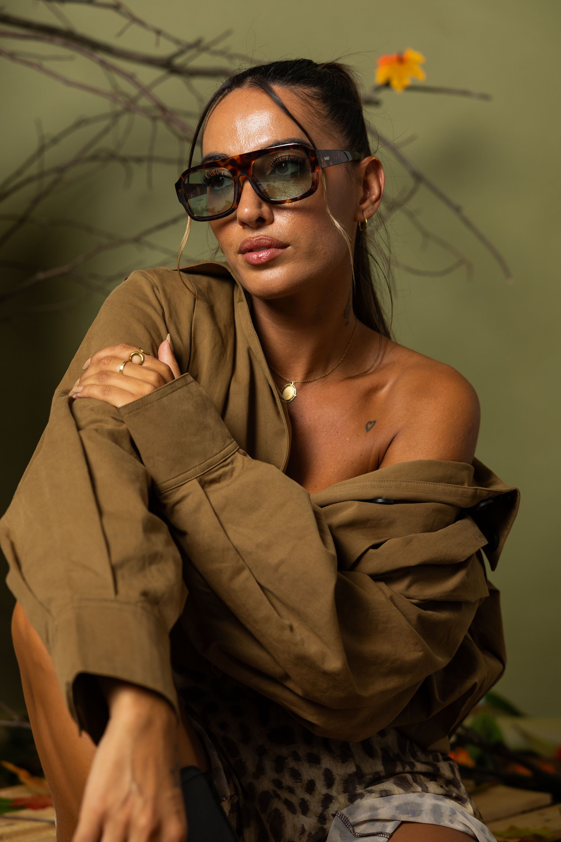 - Design Elegante: Modelo aviador com armação tortoise e lentes verdes, perfeito para qualquer ocasião.