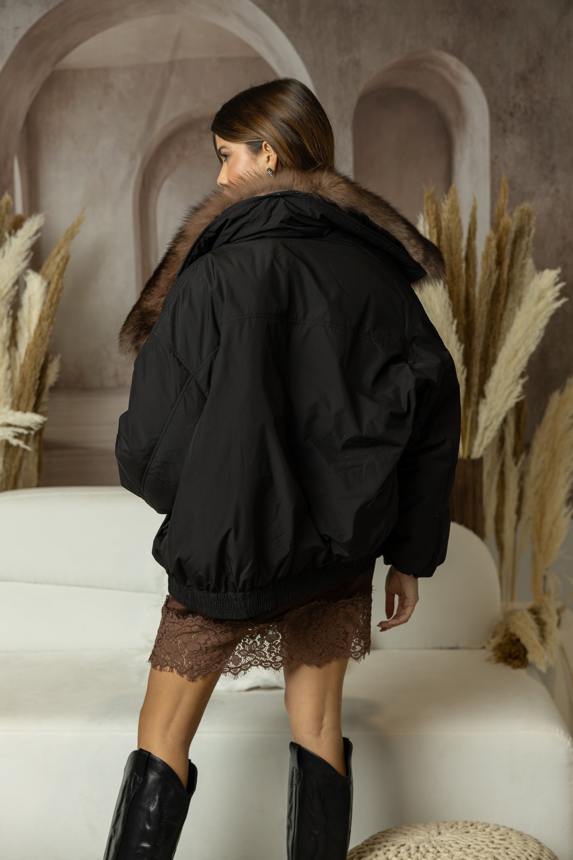 Com enchimento de penas de pato (90% duck down) para máxima leveza e isolamento térmico, e gola em pelo natural super macio, este casaco eleva qualquer look com um toque de luxo moderno.