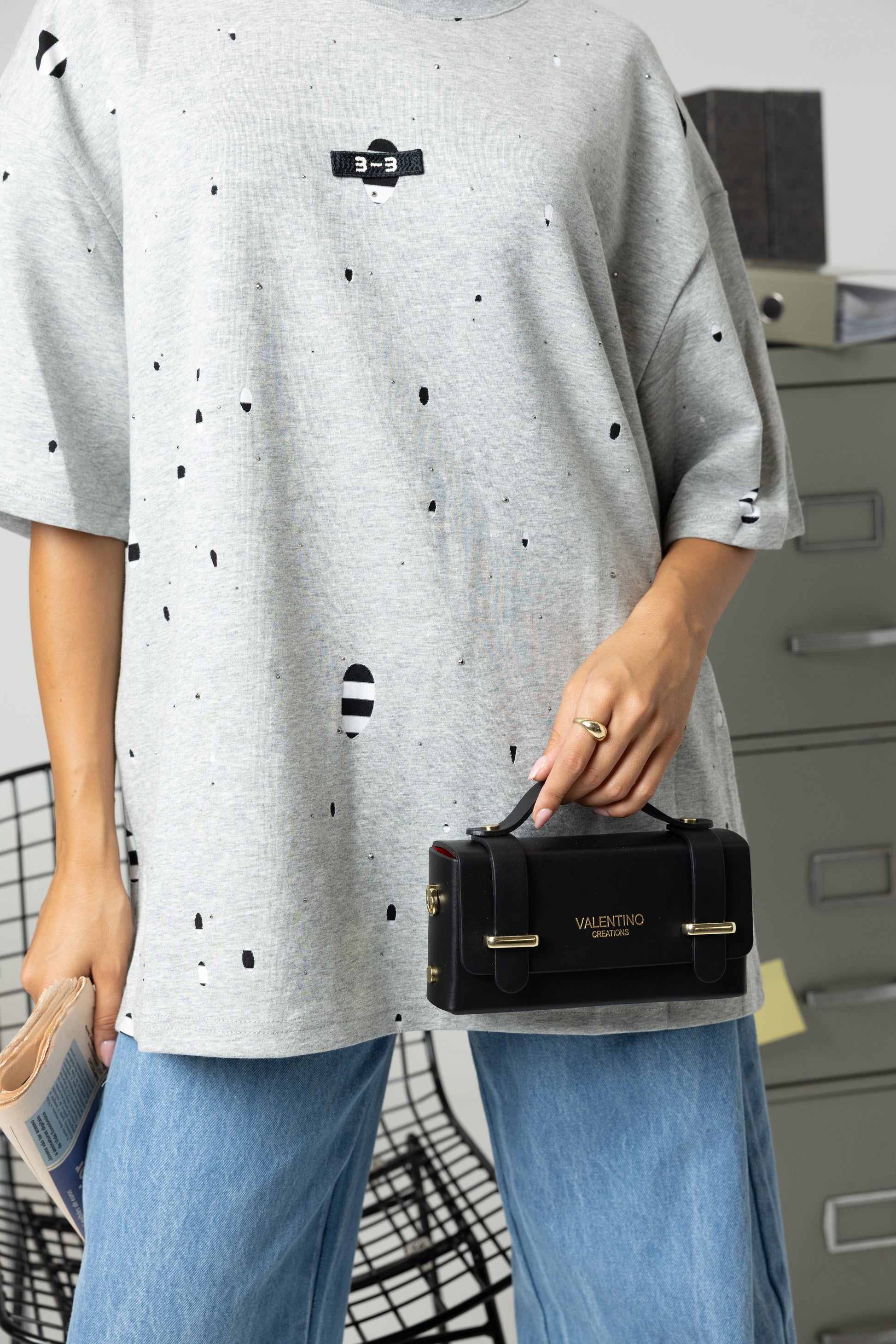 Com dimensões de 18 x 5 x 9 cm, é prática sem perder a delicadeza. Acompanha alça que permite usá-la de forma versátil e um saquinho de pano exclusivo para proteção.