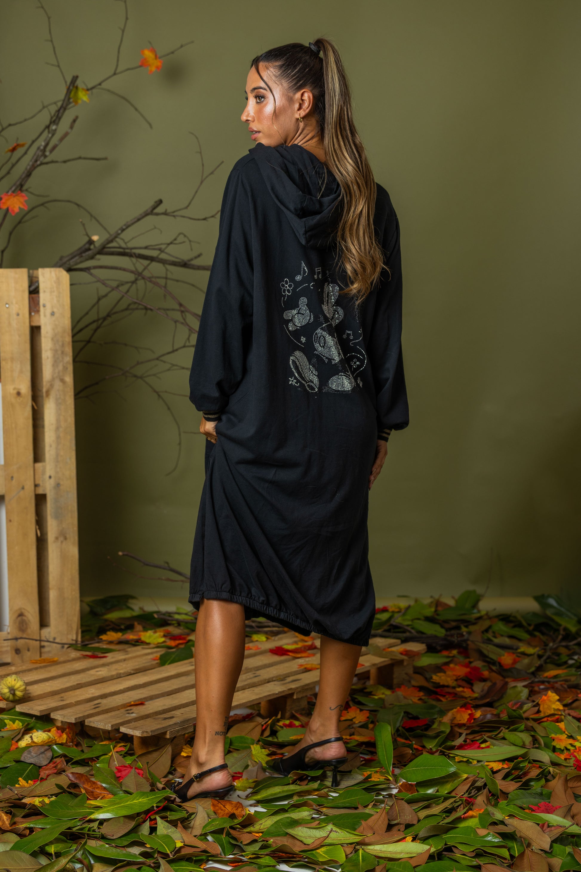 O conforto do algodão aliado a um toque divertido e moderno! Este vestido 100% algodão é perfeito para o dia a dia, leve, prático e cheio de estilo. O capuz confere um ar descontraído, enquanto o detalhe brilhante na parte de trás adiciona um toque de charme irresistível.